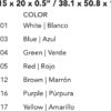 | Color | Blue (-03), Brown (-12), Green (-04), Red (-05), White (-01), Yellow (-17) |